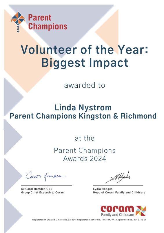 Kingston and Richmond were nominated for scheme of the year and two of our SEND parent champions were nominated for "Biggest Impact" - Misha Patel and Linda Nystrom.